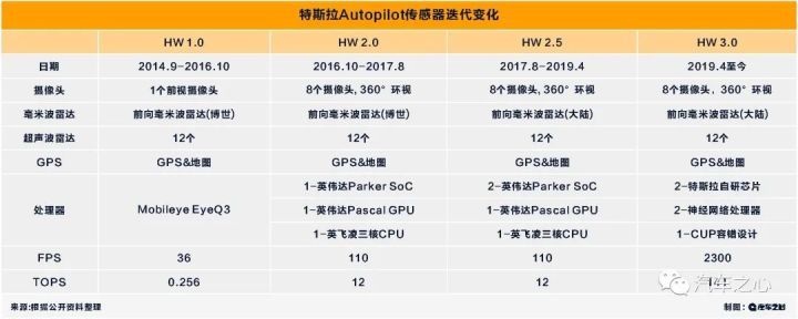 3、Autopilot 系統(tǒng)上搭載傳感器的演進過程