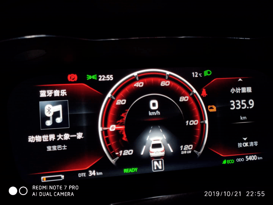 2019年10月單鍋電續(xù)航表現(xiàn):實(shí)際駕駛里程335.9公里,剩余表顯續(xù)航34公里