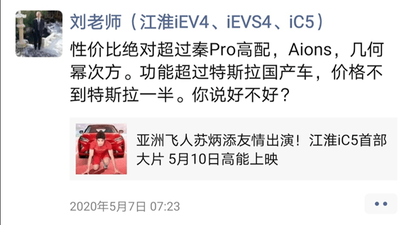 劉老師的朋友圈,幾乎一半內(nèi)容都跟江淮有關(guān)。