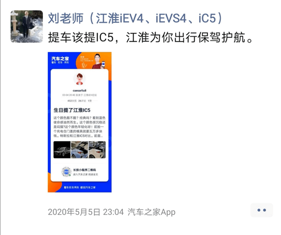iC5已經(jīng)是他第四輛江淮新能源了——得有多愛江淮,才會買這么多江淮的車?。?/p>