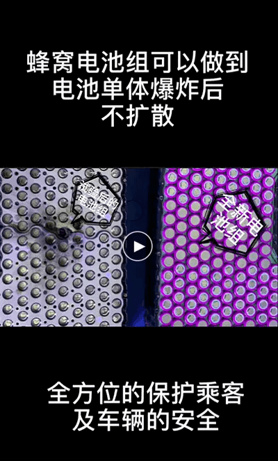 “蜂窩電池的最大特點(diǎn)就是提升安全,預(yù)計(jì)可以將電池失效導(dǎo)致的車輛起火概率降低一個(gè)數(shù)量級,比如,以往1萬輛電動(dòng)車有可能發(fā)生一起熱失控,運(yùn)用蜂窩電池技術(shù)之后將變成10萬輛才發(fā)生一起”。