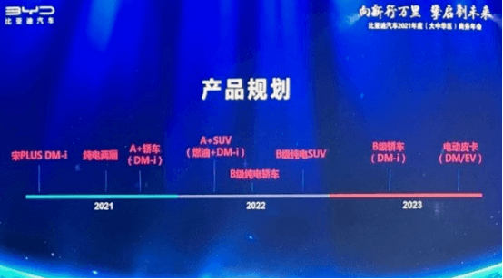 除了三款DM-i車型之外,比亞迪還將在今年年內(nèi)推出一款純電兩廂車型。在明年和后年陸續(xù)推出B級(jí)的純電動(dòng)SUV<SUV以及轎車車型,還有插電式混動(dòng)的B級(jí)車型??梢钥闯鼋刂?023年,純電動(dòng)皮卡和插電式混動(dòng)皮卡車型也出現(xiàn)在了比亞迪產(chǎn)品規(guī)劃圖上。屆時(shí)比亞迪旗下的新能源產(chǎn)品將涵蓋A級(jí)車、B級(jí)純電、混動(dòng)轎車以及SUV車還有純電、混動(dòng)的皮卡車型。