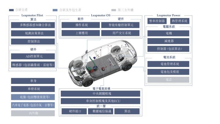 超高自研比例,從截圖可以看到,除了內(nèi)外飾和電芯,零跑幾乎所有的技術(shù)都是(可以)自研的。