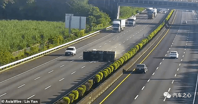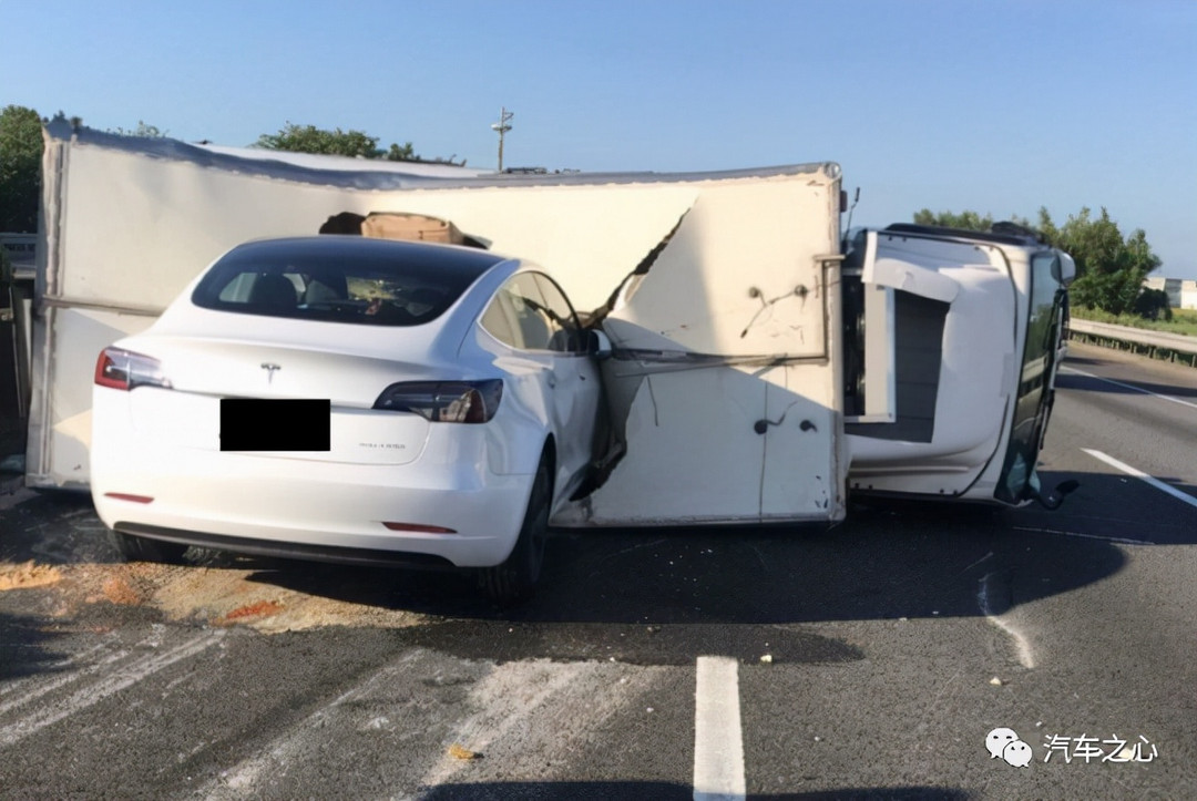特斯拉在臺灣撞上靜止的側翻的大貨車