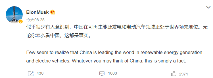 5月30日早,特斯拉CEO馬斯克在微博上稱:中國可再生能源和電動汽車都處于世界領(lǐng)先地位。自2021年美國將中國視為電動汽車領(lǐng)域最大的競爭對手之后,中國電動汽車市場領(lǐng)先全球的假象逐漸彌漫。