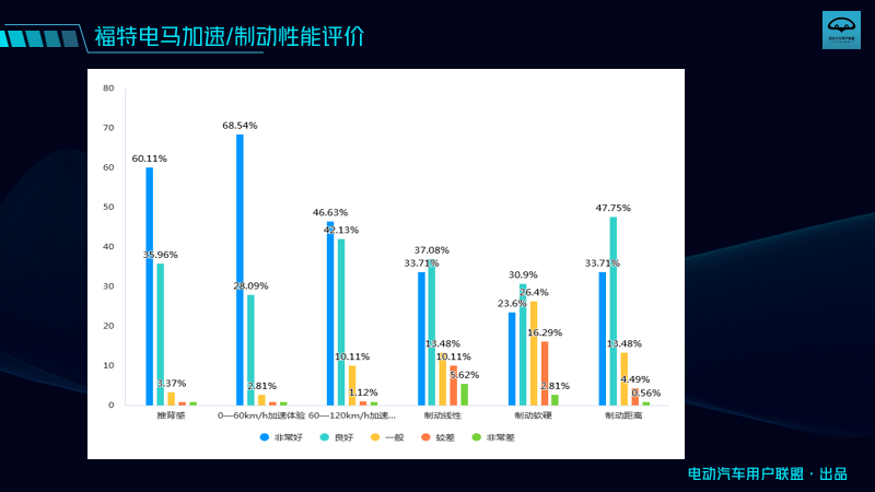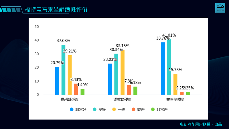 從調研結果來看,電馬確實沒讓車主們失望,大家對車輛的操控評價非常高,在轉彎半徑、轉向助力和轉向精準度上,90%以上的車主都給出了好評;在加速和制動的性能上,大家的評價也頗高。