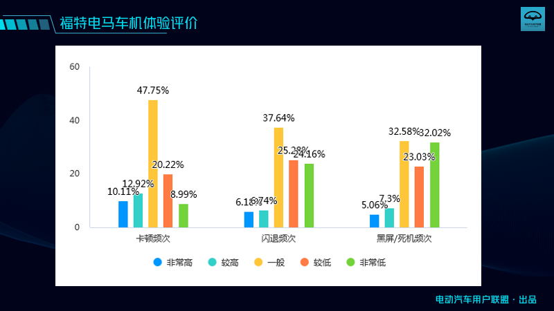 而在車機的卡頓、黑屏、死機等方面,電馬車主的體驗倒也還好。