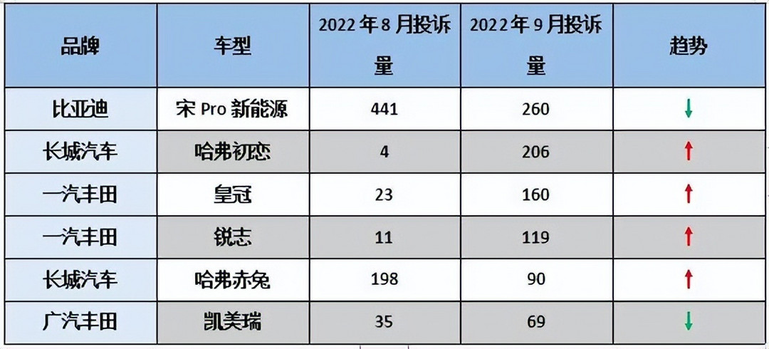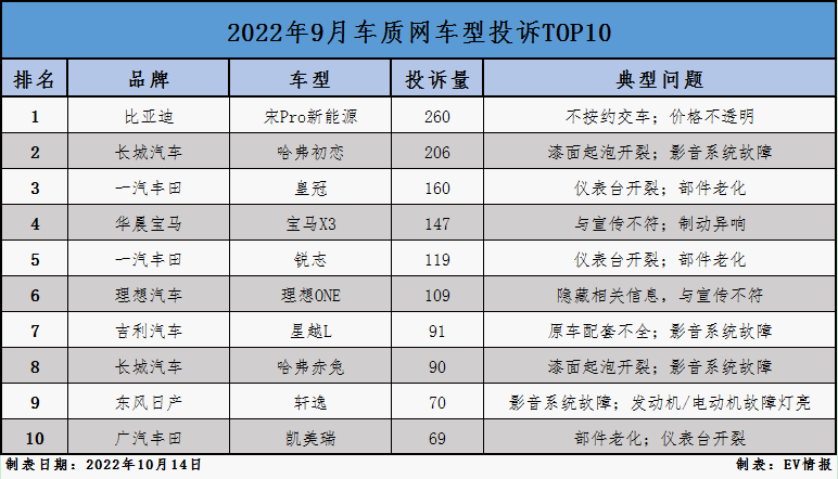 首先,是車質(zhì)網(wǎng)9月投訴排行榜速覽。