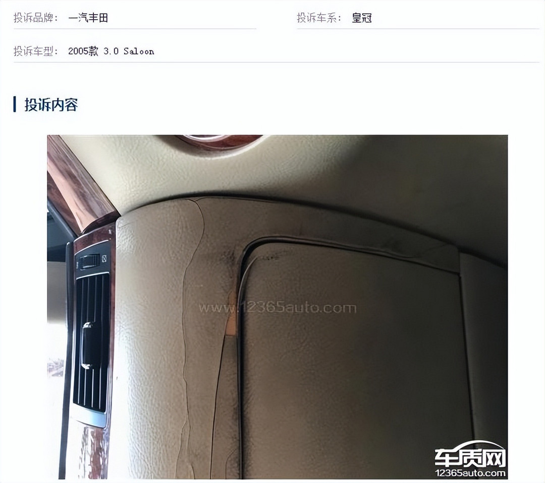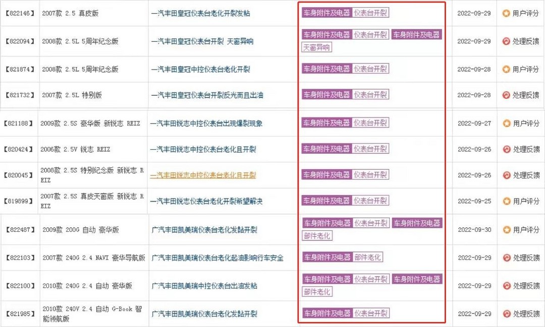 遭到車主投訴豐田的皇冠、銳志、凱美瑞車型,幾乎面臨著同樣的投訴問題:儀表臺開裂,部件老化。