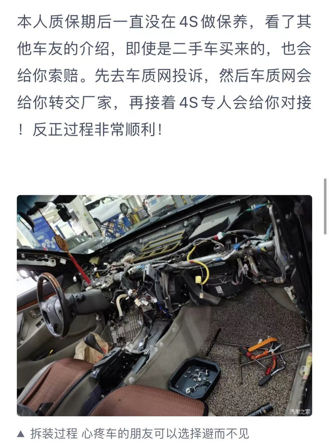到了這里,貌似在上演“會(huì)哭的孩子有奶吃”的場景,投訴就能享受儀表臺免費(fèi)更換?直接找4S店便吃閉門羹?