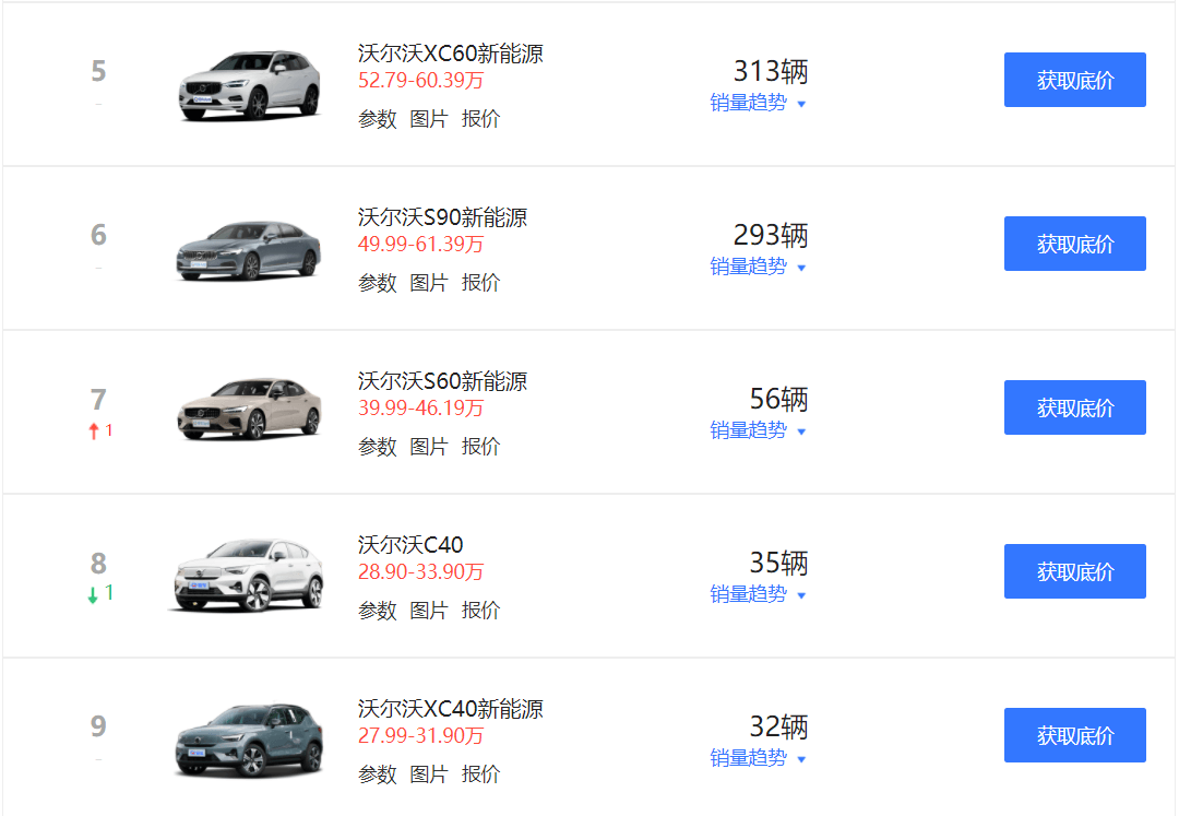 國內(nèi)方面,從易車的銷量榜來看,10月份沃爾沃XC60新能源銷量313輛,沃爾沃S90新能源銷量293輛,沃爾沃S60新能源銷量56輛,沃爾沃XC40新能源銷量32輛。由此看來沃爾沃在國內(nèi)新能源銷量數(shù)據(jù)并不是很理想。