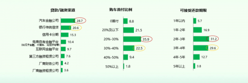 調(diào)查顯示,新能源汽車金融的渠道集中在汽車金融公司和銀行渠道,汽車金融公司占比達(dá)到28.7%,銀行傳統(tǒng)信貸和信用卡分期累計占比達(dá)到35.9%。