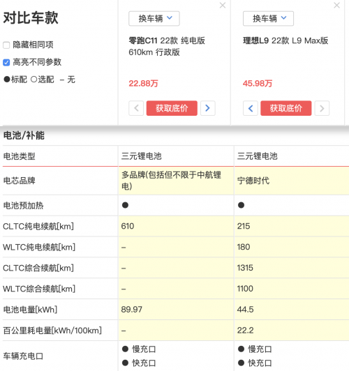 壓縮電池成本。以零跑C11為例,純電版本產(chǎn)品電池搭載數(shù)量是理想L9增程電動汽車