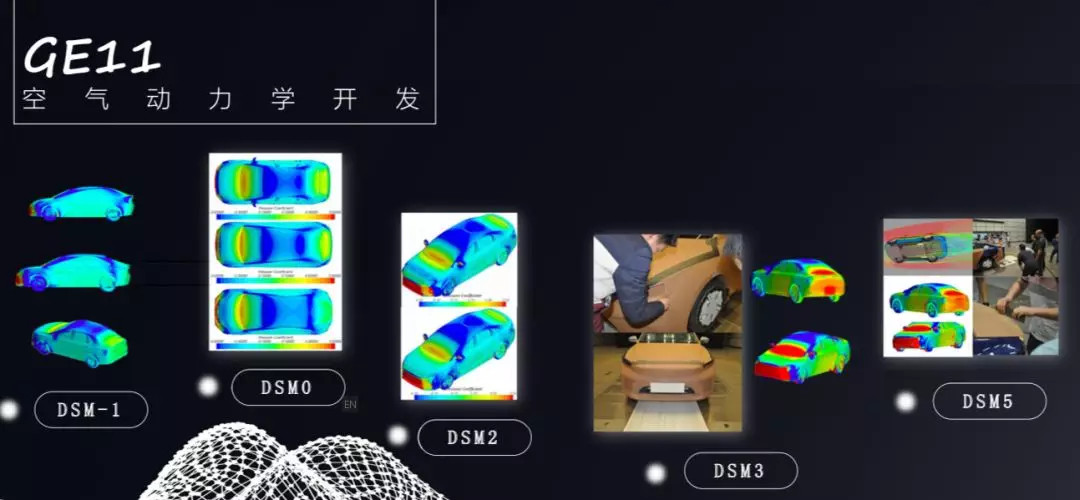 吉利研究院的羅標(biāo)能說,GE11 的空氣動(dòng)力學(xué)開發(fā)歷時(shí)兩年共7個(gè)階段,提出過至少 200 種設(shè)計(jì)方案,經(jīng)過幾千小時(shí)的仿真分析(CFD計(jì)算),「風(fēng)洞一響黃金萬輛」的風(fēng)洞實(shí)驗(yàn)就做了7次大約80小時(shí)。