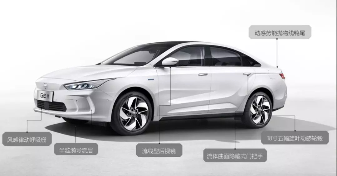 最終,吉利在 GE11 上通過「7大御風(fēng)模塊」——主動(dòng)進(jìn)氣格柵、前輪擾流板、流線型后視鏡、隱藏式門把手、空氣動(dòng)力學(xué)輪輞、尾翼和低趴的車頭,實(shí)現(xiàn)了 0.2375cd 的超低風(fēng)阻系數(shù)。