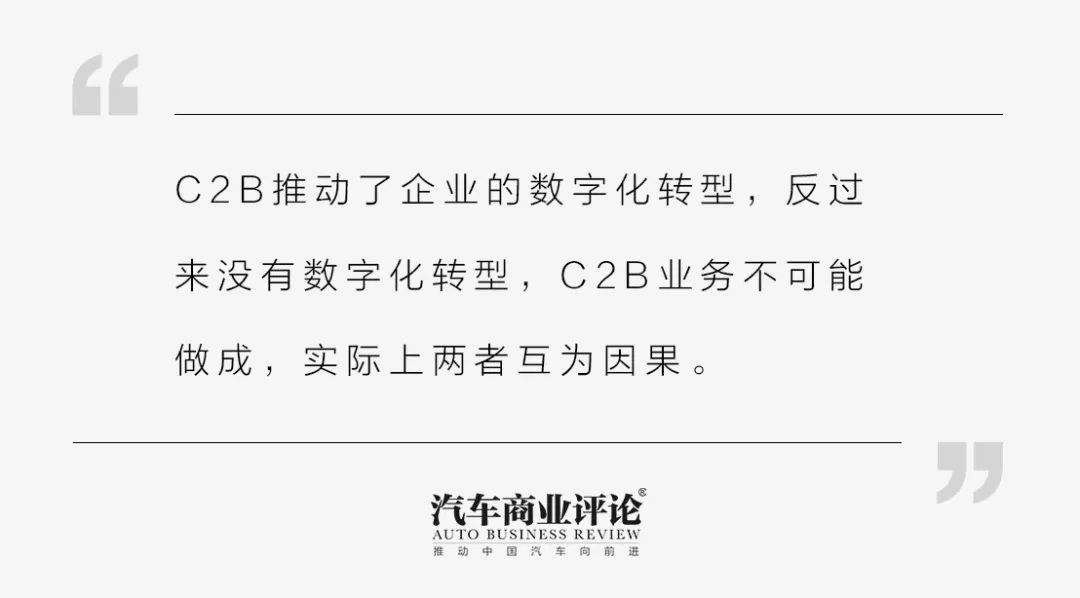 C2B推動(dòng)了企業(yè)的數(shù)字化轉(zhuǎn)型,反過(guò)來(lái)沒(méi)有數(shù)字化轉(zhuǎn)型,C2B業(yè)務(wù)不可能做成,實(shí)際上兩者互為因果。