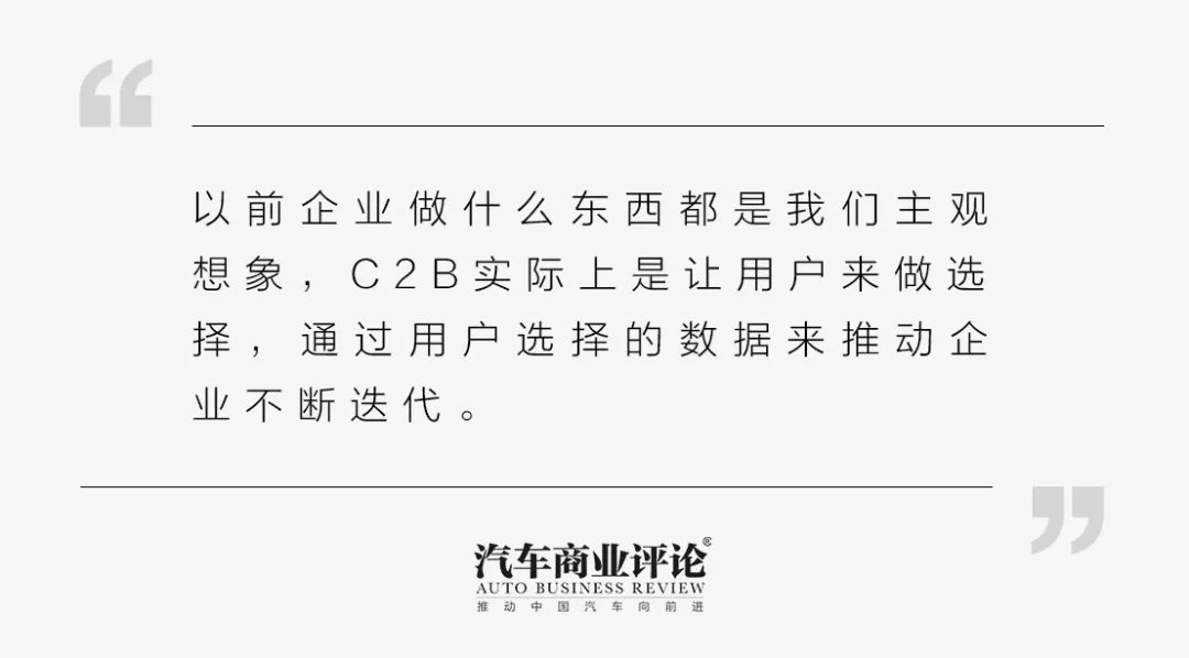剛才我講到數(shù)字化轉(zhuǎn)型,現(xiàn)在再聊C2B,實(shí)際上我們定制的不完全是產(chǎn)品,而是定制產(chǎn)品和服務(wù)。定制產(chǎn)品還是低頻的,我更希望能夠給用戶(hù)提供個(gè)性化的服務(wù),這就是為什么要做數(shù)字轉(zhuǎn)型,就是怎么樣在用戶(hù)買(mǎi)車(chē)之前、買(mǎi)車(chē)的過(guò)程以及買(mǎi)車(chē)以后,能夠做個(gè)性化的服務(wù),做生命周期的服務(wù)。