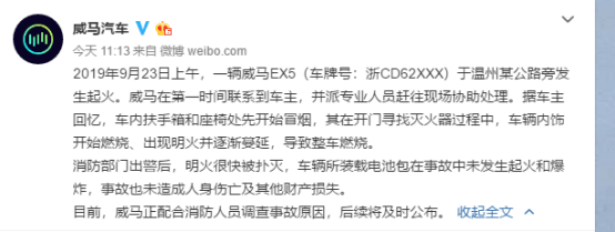 在新勢力的自燃事件中,最受關(guān)注的可能就是蔚來的幾起,而威馬可能是覺得蔚來太孤單了,來陪一陪?這件事情從車主描述中,似乎不是外力導(dǎo)致,車主表示車內(nèi)扶手箱和座椅開始冒煙,火勢逐漸蔓延,而具體的事故原因還在調(diào)查中。