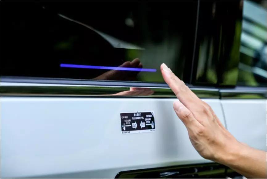 內(nèi)置于滑動門的靜電傳感器可以感知用戶手勢,攜帶智能車鑰匙的用戶在進入車輛智能識別區(qū)后,無需接觸車門開關(guān),僅在LED光束的指引下,輕輕揮手便可控制車門的開閉。