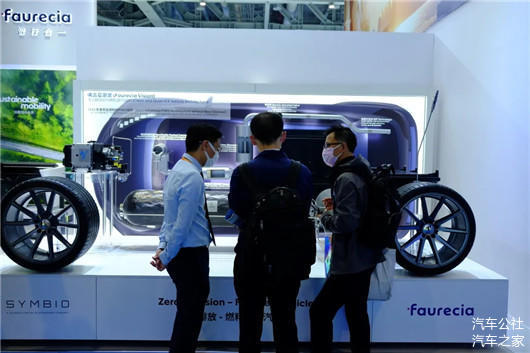 汽車零部件制造商佛吉亞展出了SYMBIO(佛吉亞和米其林共同出資組建)的燃料電池S型電堆包技術(shù),以及佛吉亞適用于輕型車和商用車的綜合儲氫系統(tǒng)解決方案。而現(xiàn)場跟佛吉亞的工程人員聊下來,發(fā)現(xiàn)目前氫能源在乘用車領(lǐng)域的應(yīng)用,還是不太成熟的。