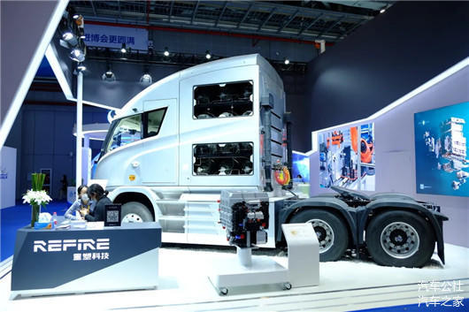 比如,上海重塑科技這次帶來了49噸重的搭載鏡星產(chǎn)品的燃料電池智能重卡“星索一號”,無疑是個“大家伙”,其最大搭載12瓶組70Mpa車載儲氫系統(tǒng),在實際運營中,可實現(xiàn)續(xù)航里程近1000公里。另外,配合車輛的L4級自動駕駛技術(shù)和智能網(wǎng)聯(lián)技術(shù),實現(xiàn)了車隊運營優(yōu)化和效能提升。