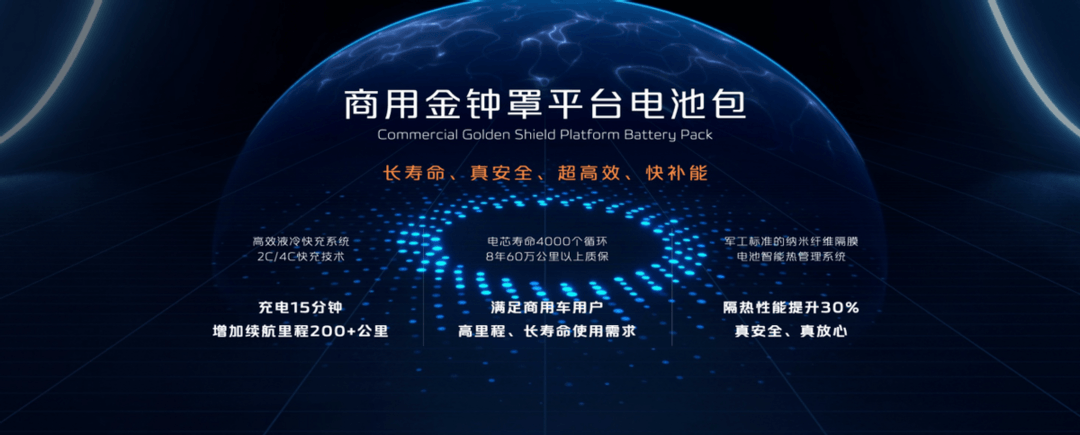 在電池設(shè)計(jì)方面,長安凱程憑借長安汽車電池研究院的成熟研發(fā)管理體系,商用金鐘罩平臺(tái)電池包具備長壽命、真安全、超高效、快補(bǔ)能的技術(shù)特點(diǎn)。電池包采用高效液冷快充系統(tǒng),可拓展搭載2C、4C快充技術(shù),用戶只需充電15分鐘,即可獲得200公里以上的續(xù)航里程增加。電芯采用多功能涂層包覆負(fù)極材料以及電解液成膜改性,提高壽命至4000個(gè)循環(huán),可為用戶提供8年60萬公里以上質(zhì)保,滿足商用車用戶高里程、長壽命使用需求。