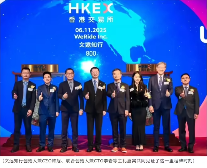 11月6日,文遠(yuǎn)知行和小馬智行分別在香港交易所掛牌上市。文遠(yuǎn)知行成為港股Robotaxi第一股,也是全球首家在美股和港股雙重主要上市的