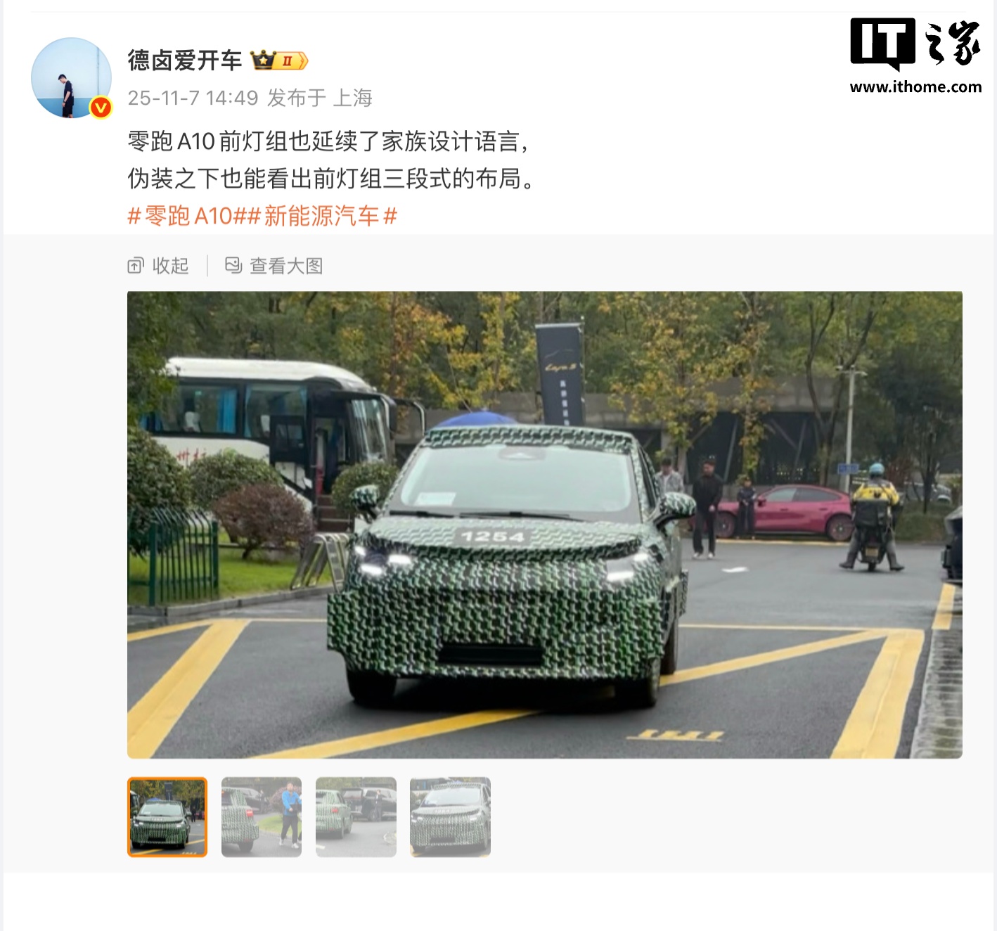 11月7日,博主@德鹵愛開車曝光了零跑汽車全新車型A10的諜照。從諜照來看,A10預(yù)計是一款小型SUV,車身覆蓋偽裝貼紙,但可以看出三段式大燈組的造型,預(yù)計將延續(xù)零跑最新的家族式設(shè)計語言。零跑汽車此前宣布,A10將在