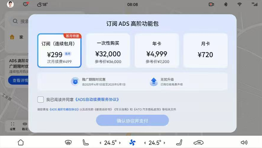 本次活動(dòng)面向未購(gòu)買“一次性購(gòu)買”商品的ADS高階功能包的高配車型用戶,包括華為乾崑智駕ADS3的ADS Pro和華為乾崑智駕ADS 4用戶。這意味著,對(duì)于符合條件的用戶來(lái)說(shuō),他們可以在首月以較低的價(jià)格體驗(yàn)華為的高階智能駕駛功能。