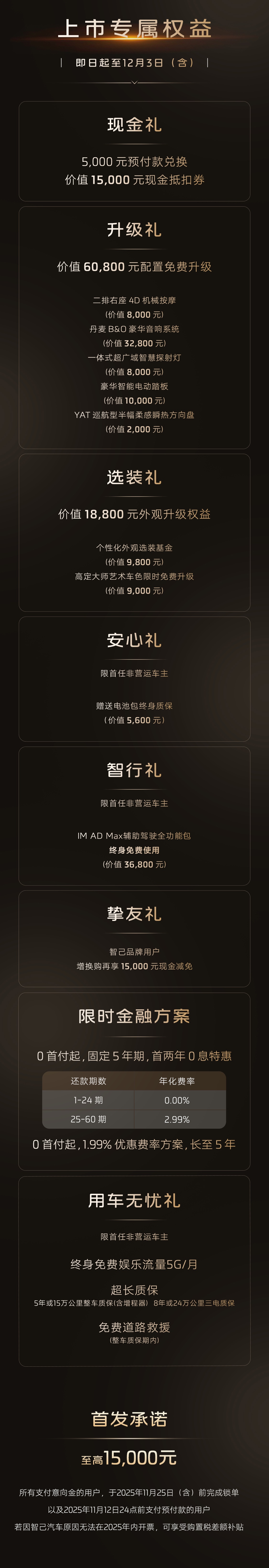 智己LS9內(nèi)飾延續(xù)新款智己LS6布局,提供兩種內(nèi)飾選擇,配備27.1英寸駕艙屏、15.6英寸副駕娛樂屏和21.5英寸二排娛樂屏,搭載IM AIOS智能座艙系統(tǒng)及高通驍龍SA8295P芯片。智能駕駛方面,全系標配520線超視域激光雷達和英偉達Thor芯片,搭載IM AD Max輔助駕駛系統(tǒng),提供多項基礎功能,用戶可選裝輔助駕駛全功能包。車內(nèi)采用2+2+2六座布局,前排座椅標配多項功能,副駕及二排座椅均為零重力座椅,第二排座椅配備腿托、可調(diào)節(jié)扶手等,第三排座椅支持電動調(diào)節(jié)及加熱功能。