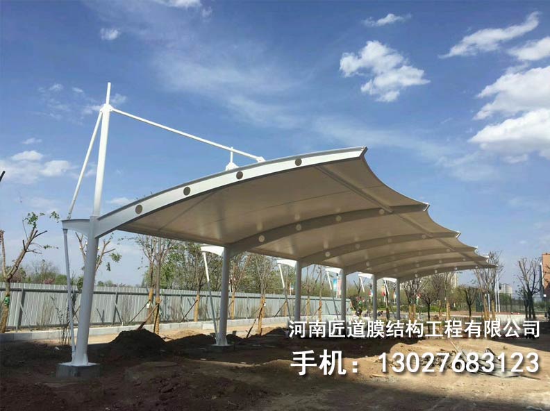 2、具有高透光率,透光率為13%,對熱能反射率73%,熱吸收量很少。正是因為這種劃時代的膜材料的發(fā)明,使膜結構車棚成為現代化的建筑。